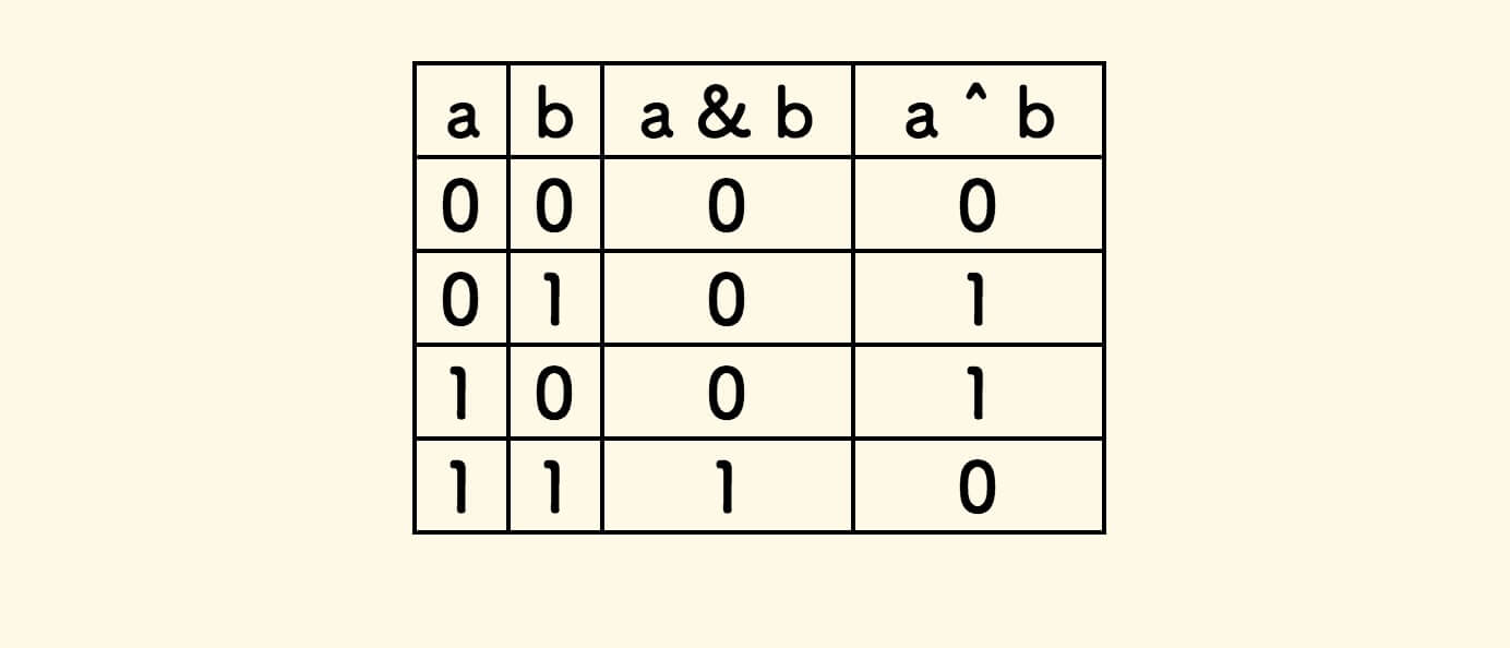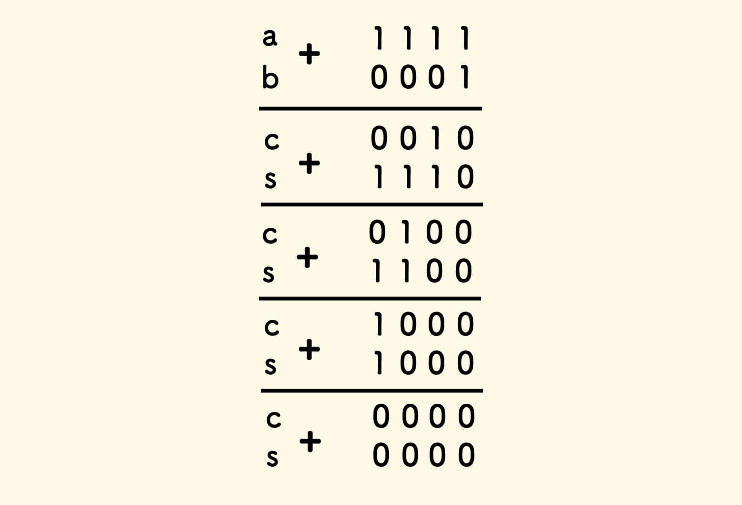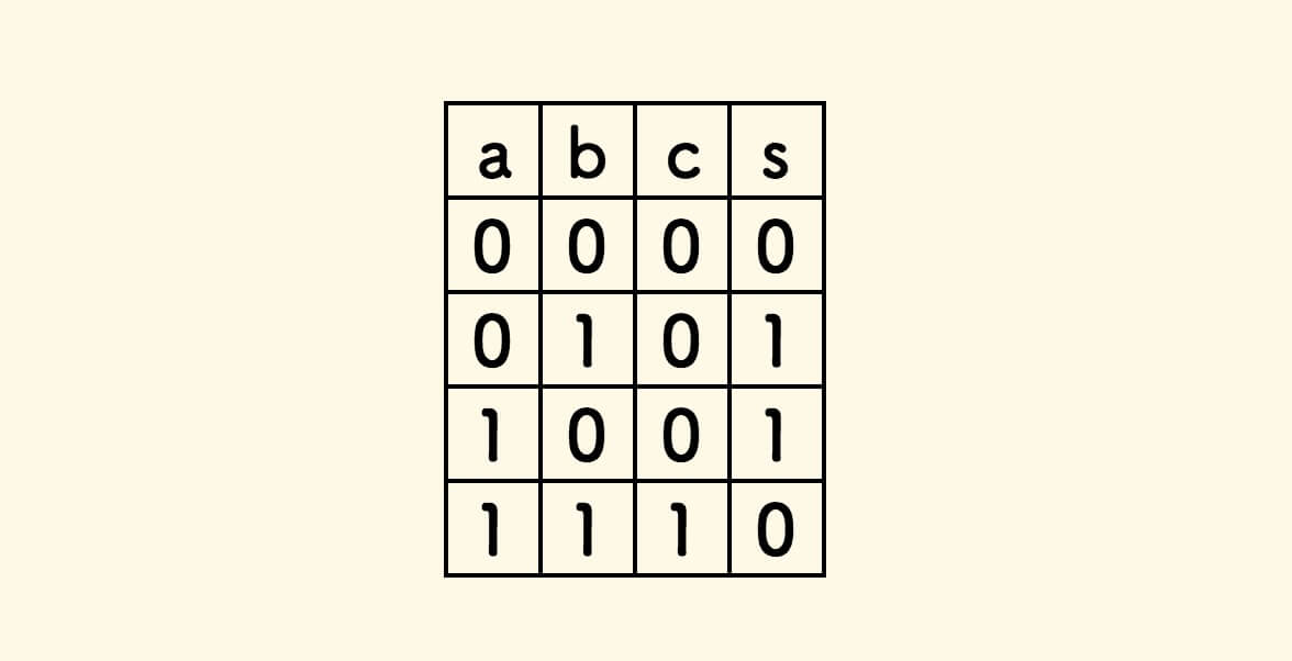 仔细观察,可知 c 的值其实是「逻辑与」的结果,s 的值其实是 「逻辑异或」的结果: