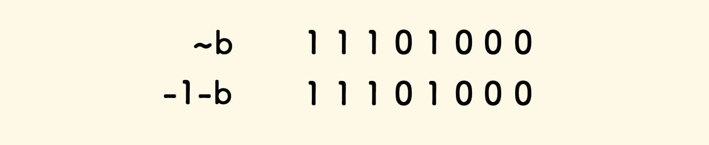 又因为 -1-b 其实就是 ~b ,所以 -b = ~b+1 。