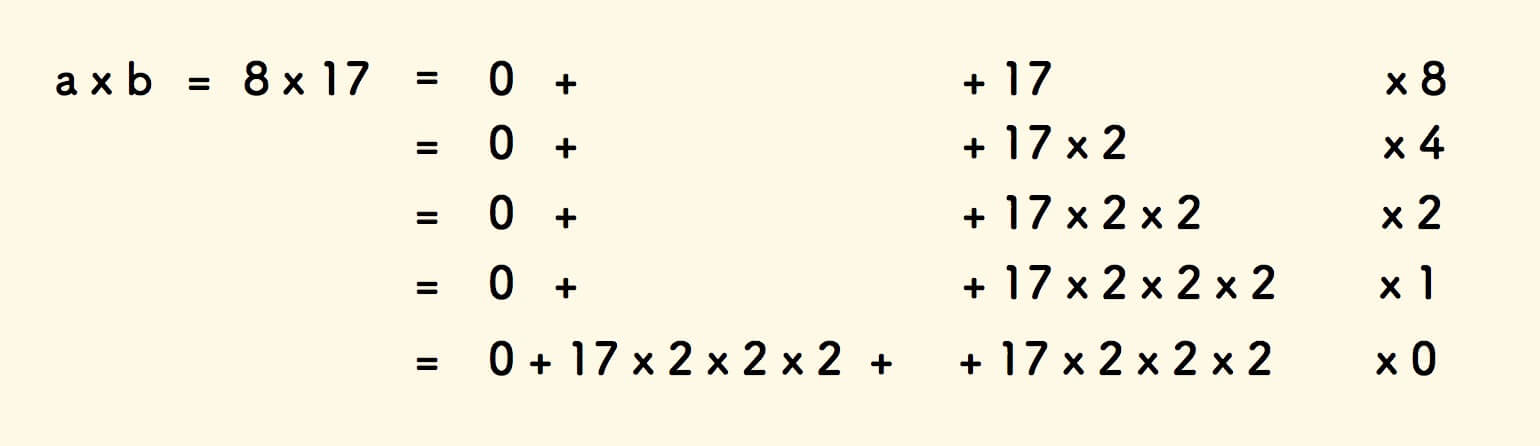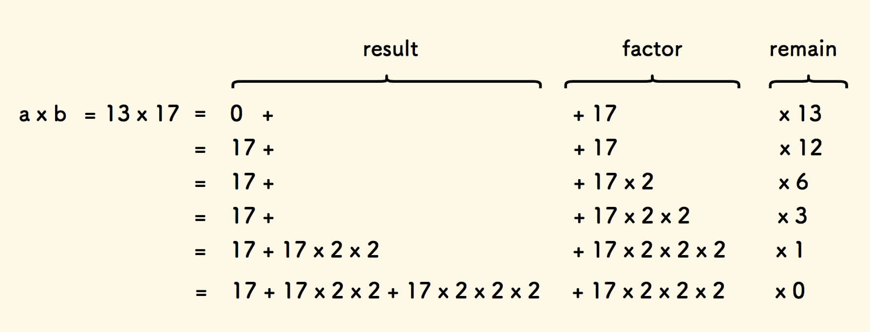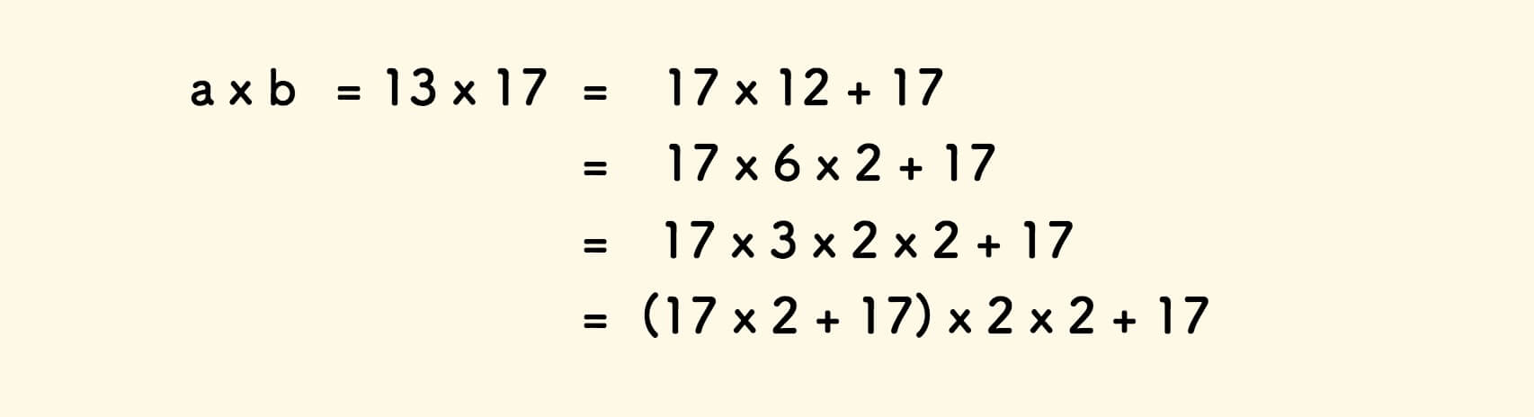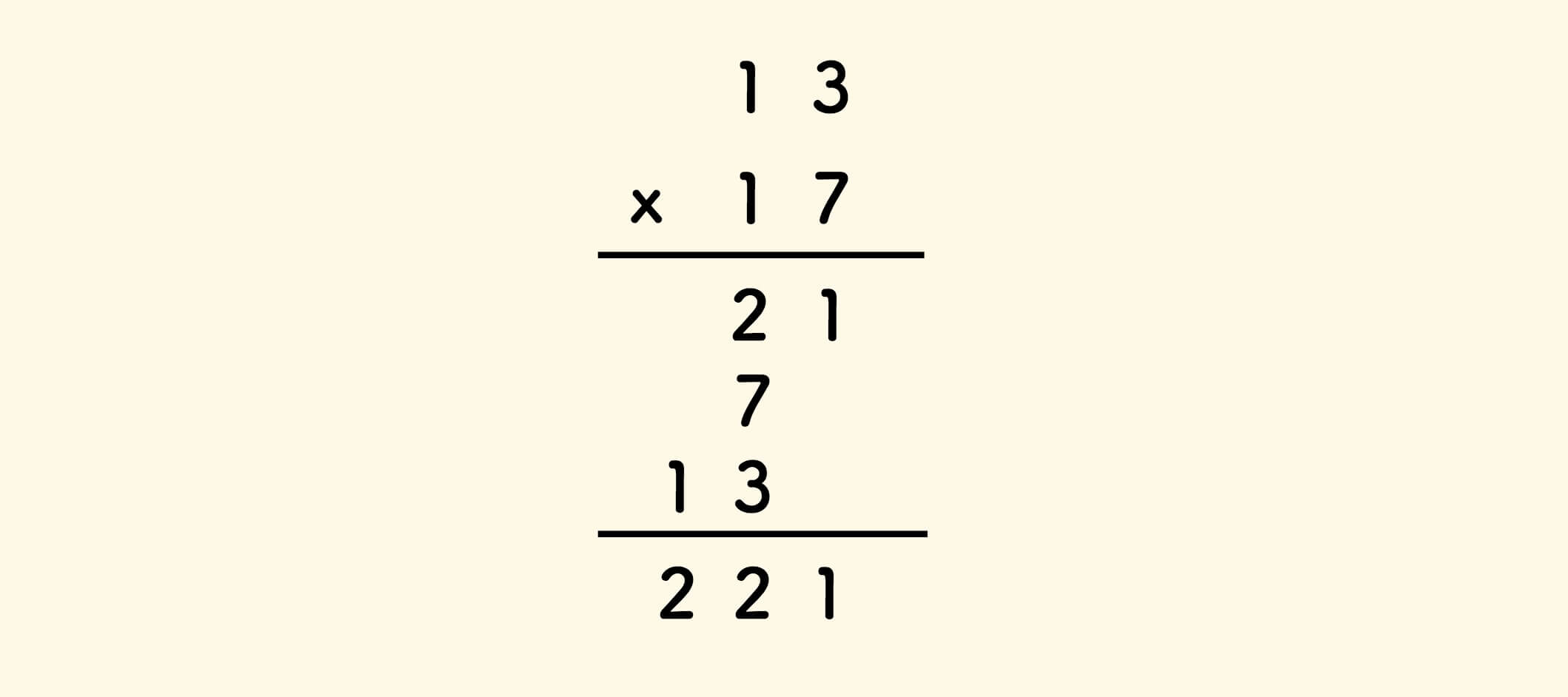 举例来说,13x17 的计算过程可以拆解如下: