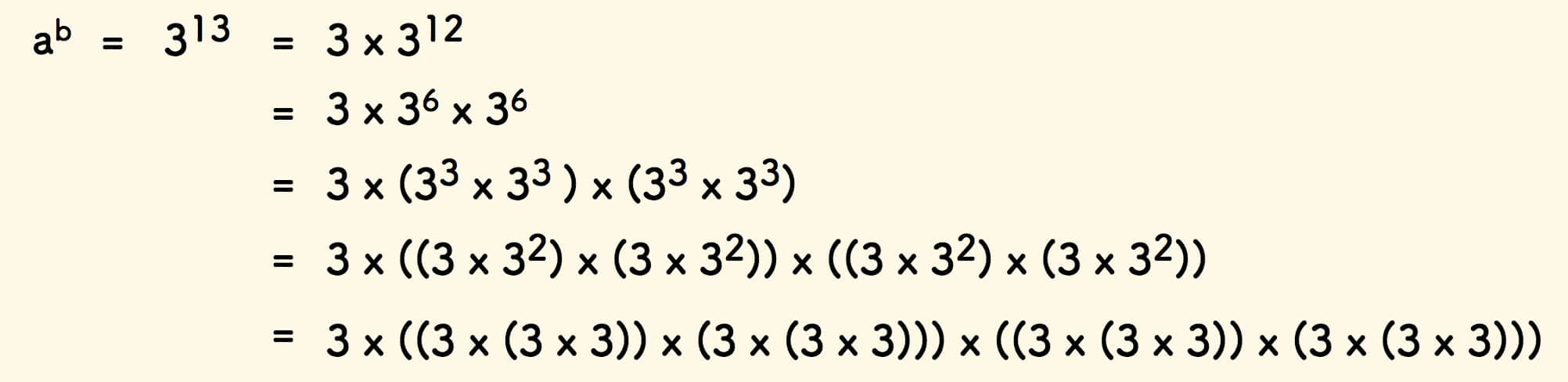 以 3^13 为例,展开如下: