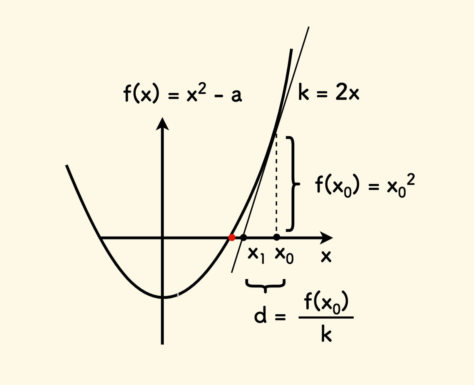 求解 $\sqrt a$ 的值,其实即求函数 $f(x) = x^2 - a$ 的零值。