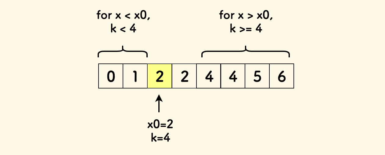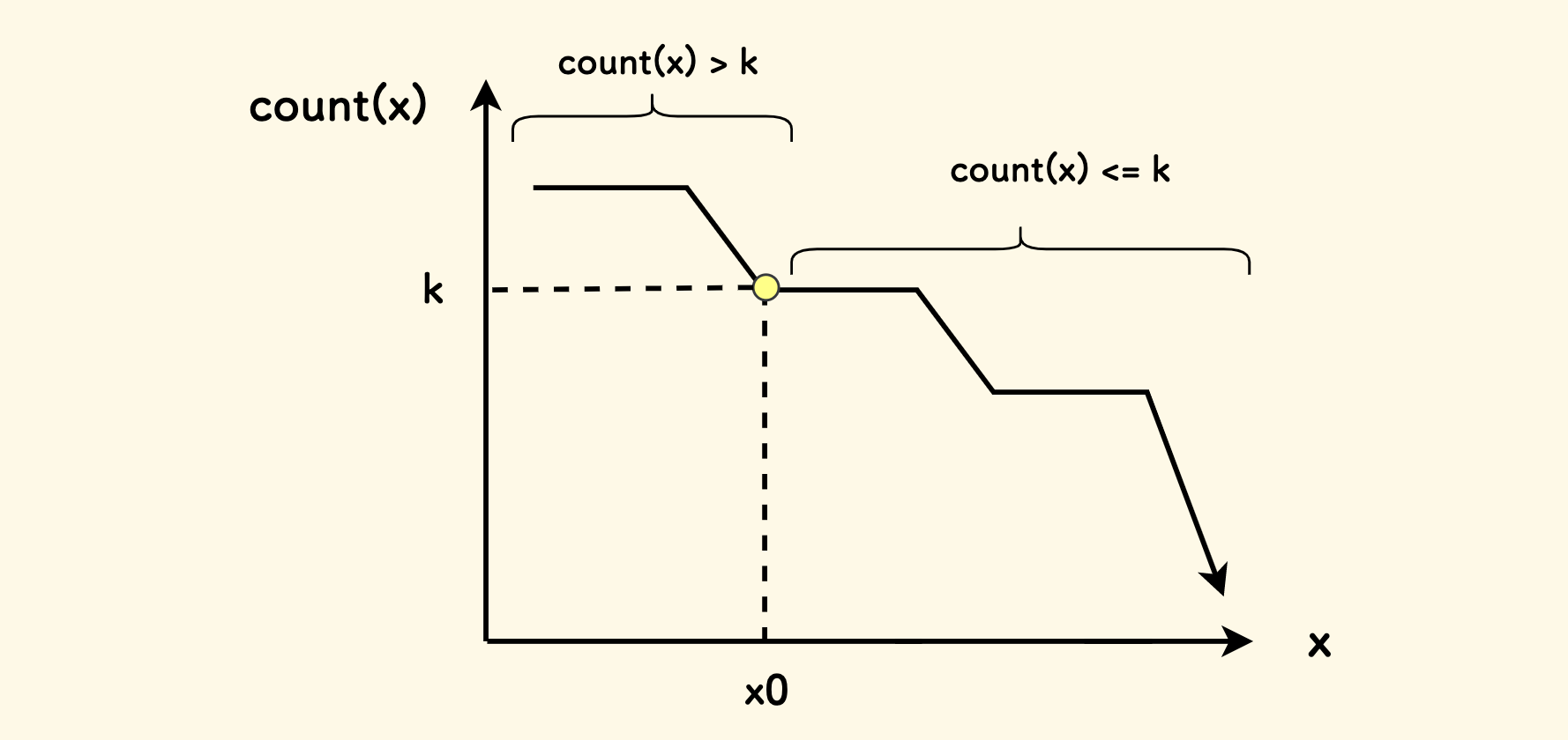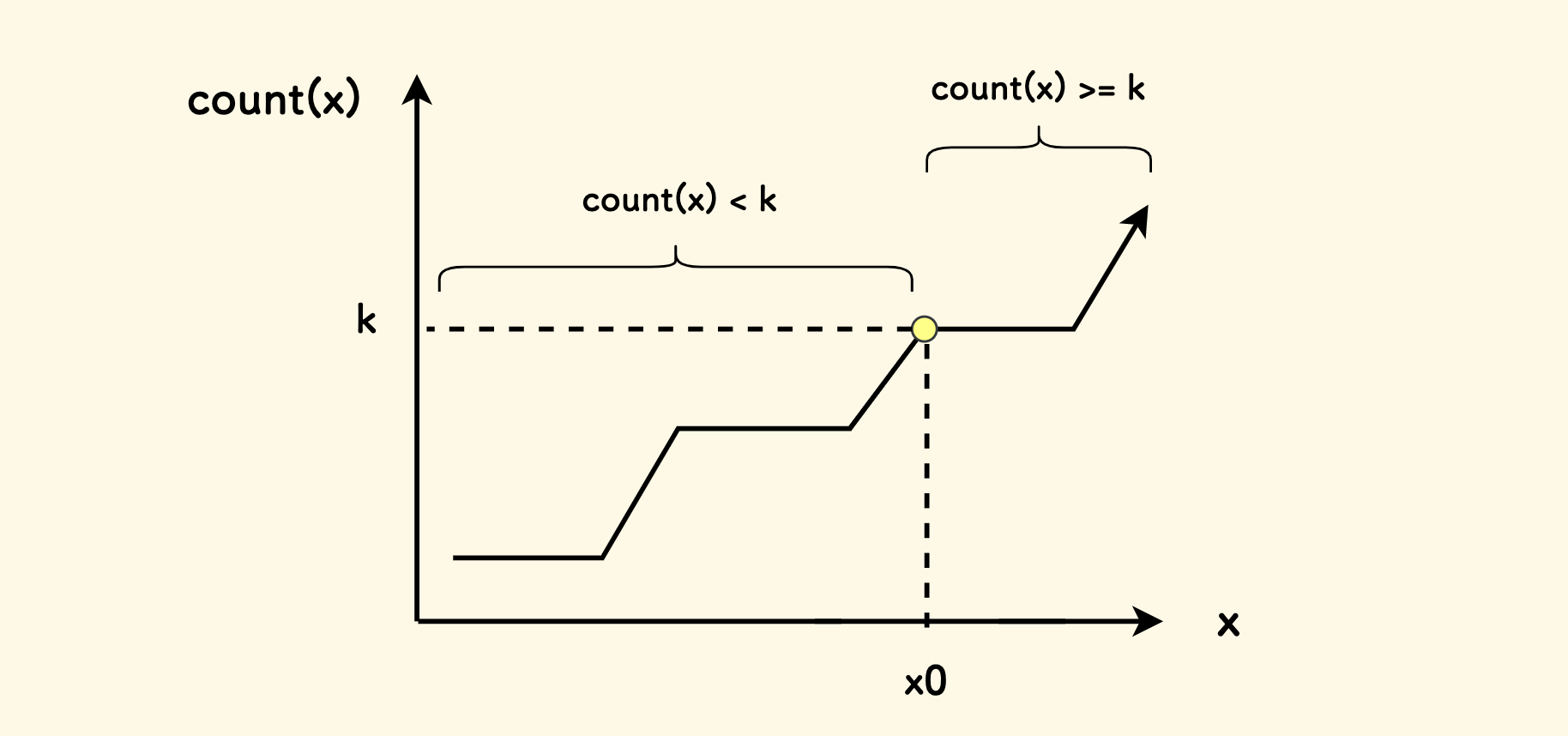 假设 x0 是满足 count(x)>=k 的最小的那个 x,那么: