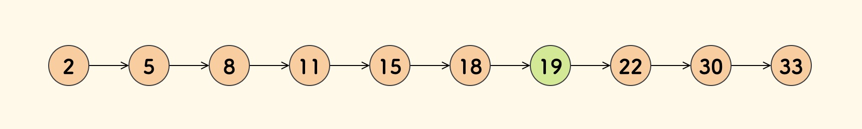 对于一个有序的单链表,查找一个元素,只能一个一个查看,时间复杂度是 $O(n)$ ,不过,插入一个元素不需要像数组那样移动元素。