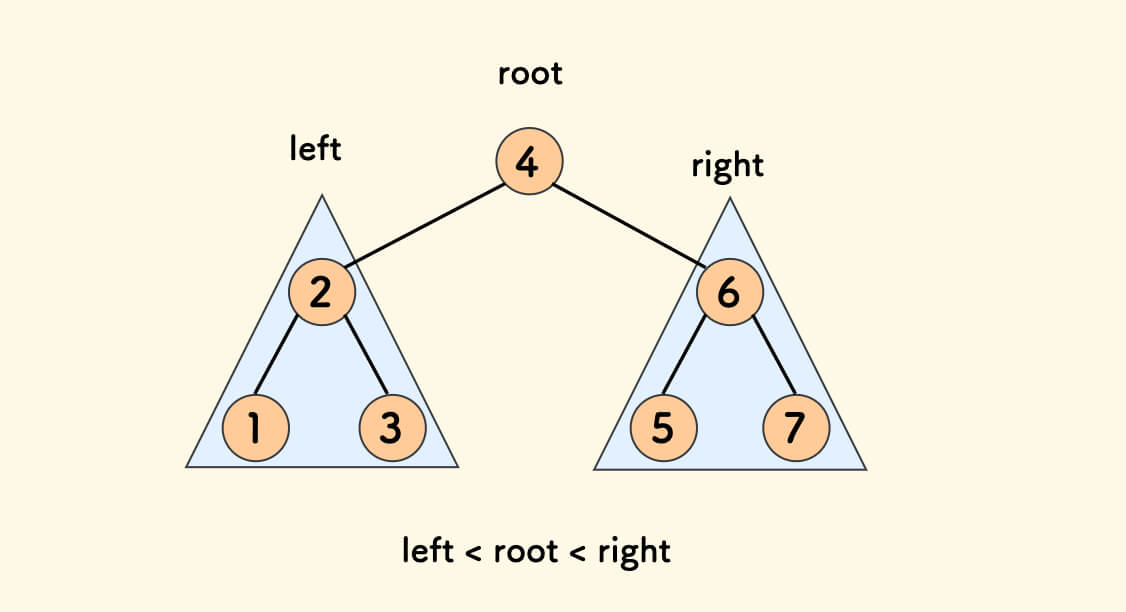 简而言之:left < root < right。