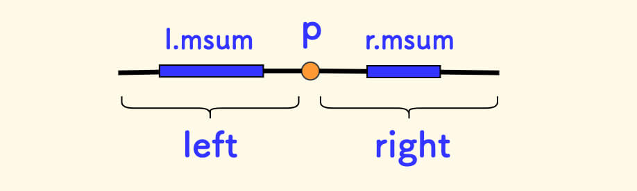 tr[p].msum = max(tr[ls].msuf + tr[p].val + tr[rs].mpre, tr[p].val);