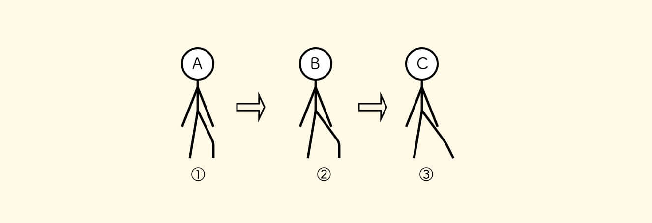不像举手的动作那样简单,迈腿的动作则分为三步: