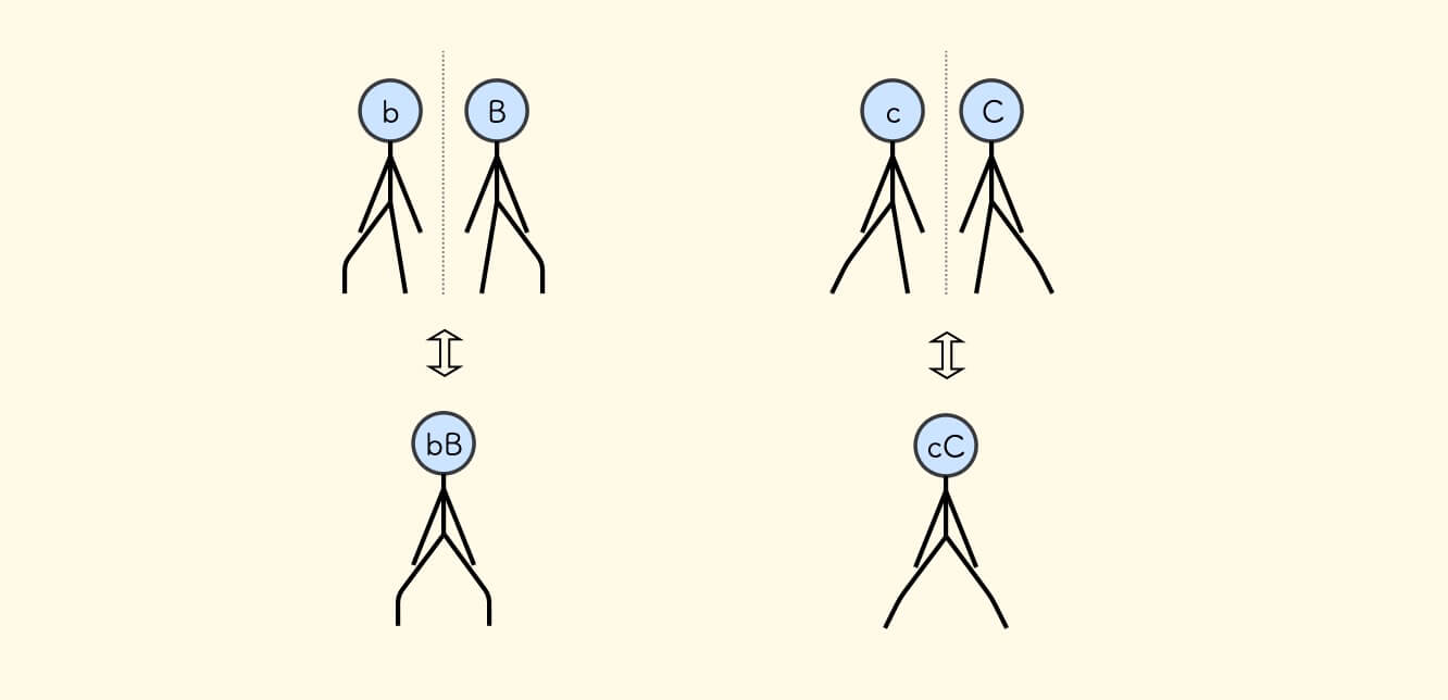 新增的两个状态是 bB 和 cC ,它们也可以看做两个士兵的综合: