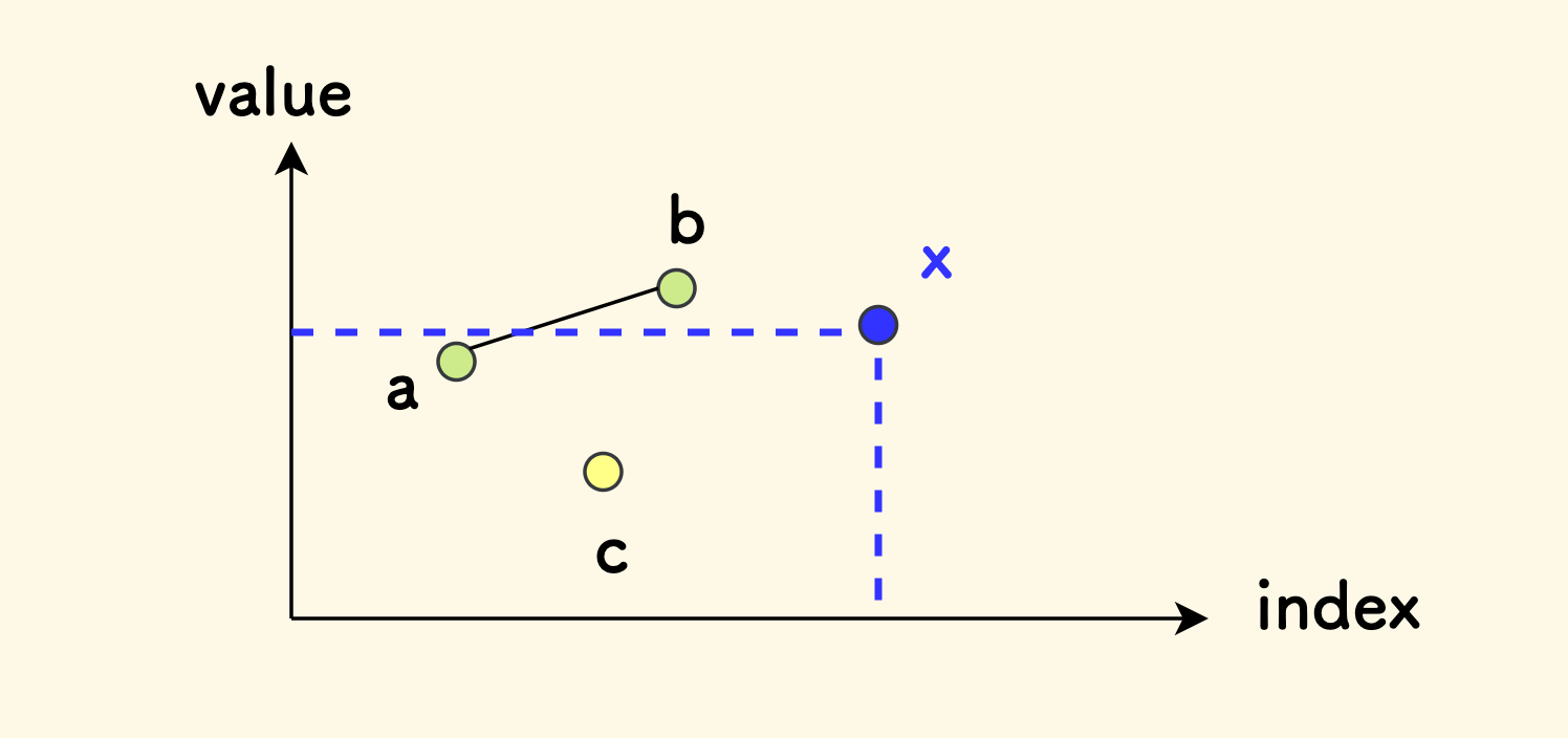 下图中,a, b 形成了长度为 2 的递增子序列,c 是已经发现的最小值。