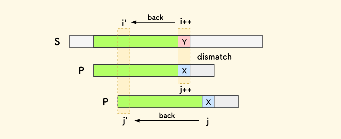 问题在于,主串迭代变量 i 和子串迭代变量 j 都进行了不必要的回溯。