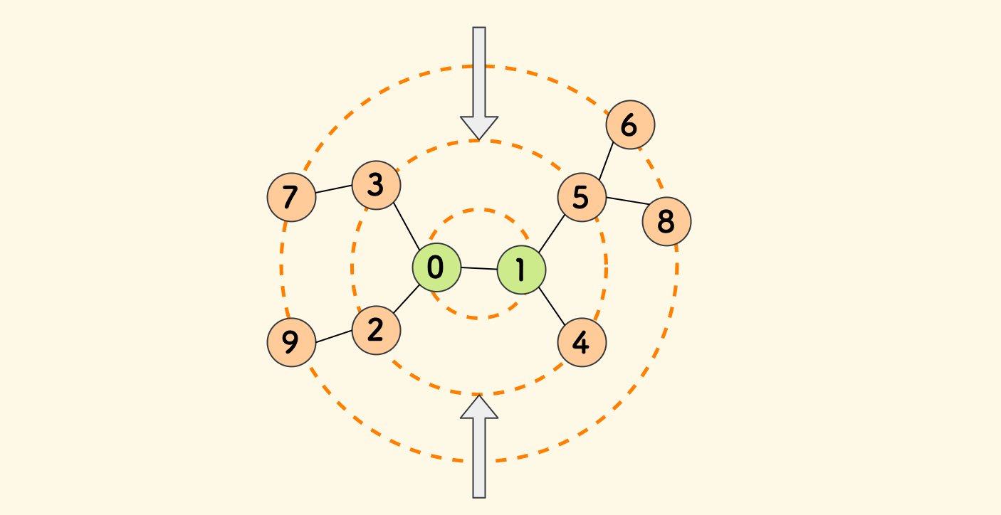 那么,主要思路就是,可以从图的边缘,逐层向内找,最后一层的节点就是答案。