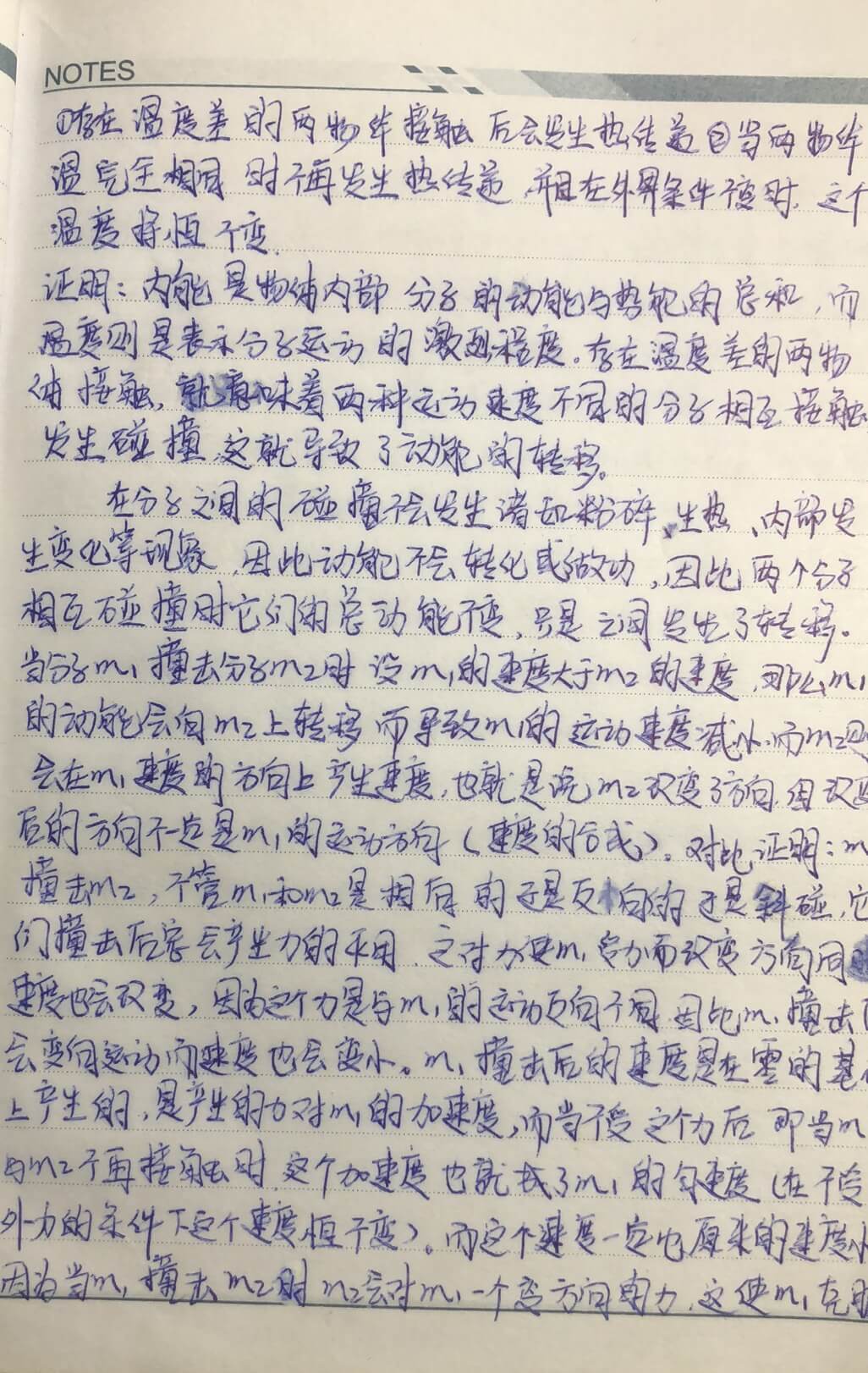 这个笔记本上还记录了一些从微观角度的思考,比如“温度差导致的热传递现象”,“电流为什么具有热效应”,“为什么高温的物体容易变形”,现在来看很多想法和解释可能是错的, , 现在,我也很好奇地去 Google 下网络上、知乎上对一些问题的解答,比如蒲丰投针的解释,比如杠杆定理的解释,去验证下当年的思考是不是正确的, 当然有些是错误的,有些我到现在也觉得是正确的,结果已经不那么重要了。