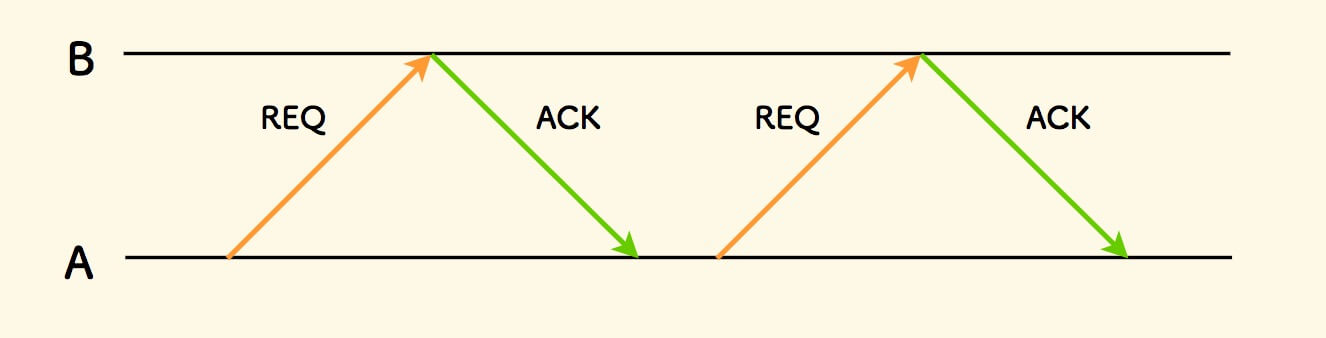 也叫做 停止并等待 ARQ 协议, 是指 发送方等到接收方的确认包后,再发下一个数据包 。