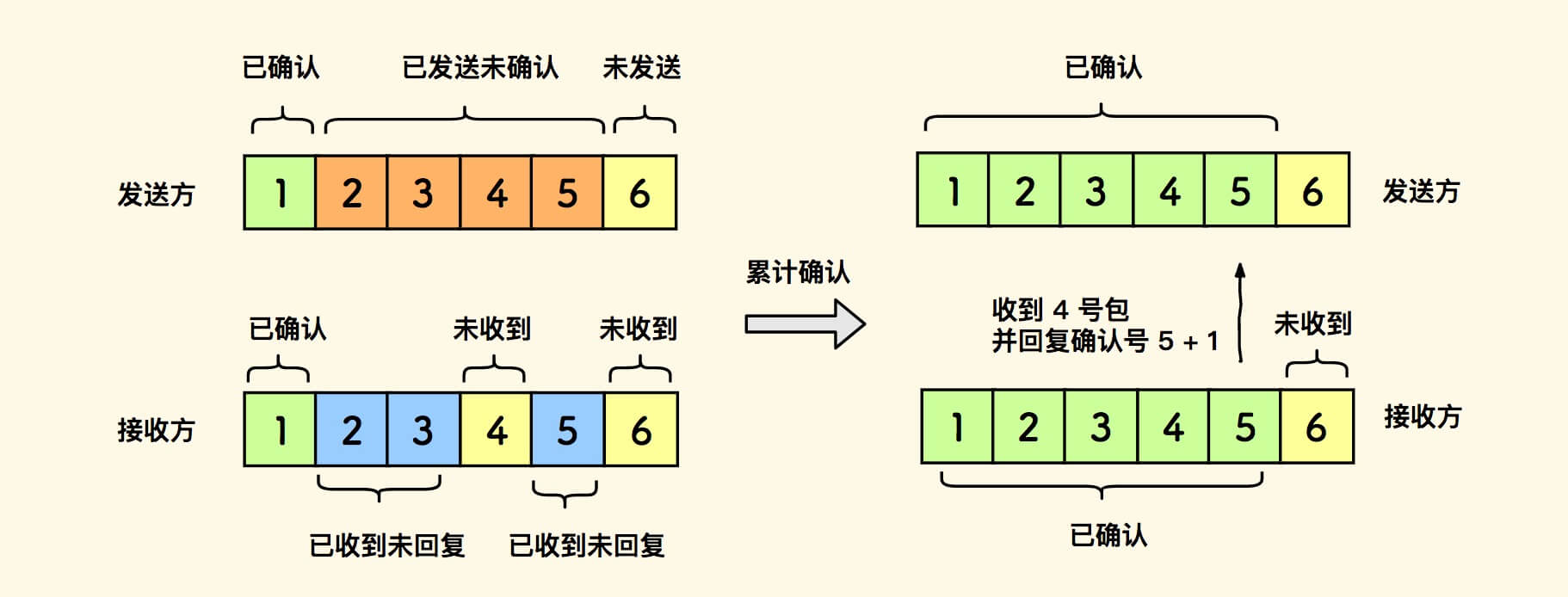 这种确认号的机制,即可实现累计确认机制: