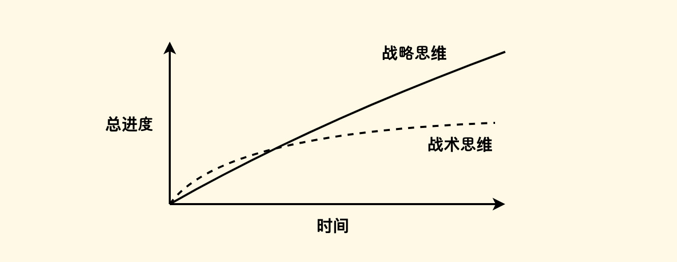 《软件设计的哲学》 划分了两种开发思维: 战术的 和 战略的。后者强调了系统设计是一种需要持续精进的长期工作: